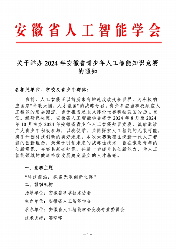 关于举办2024年安徽省青少年人工智能知识竞赛的通知